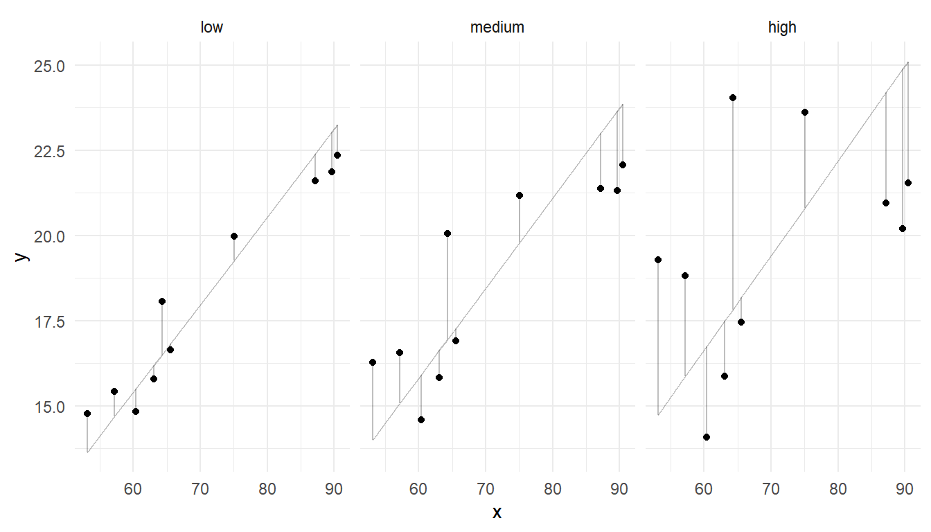Note that the lines in the figures below have intercepts of zero (i.e.,