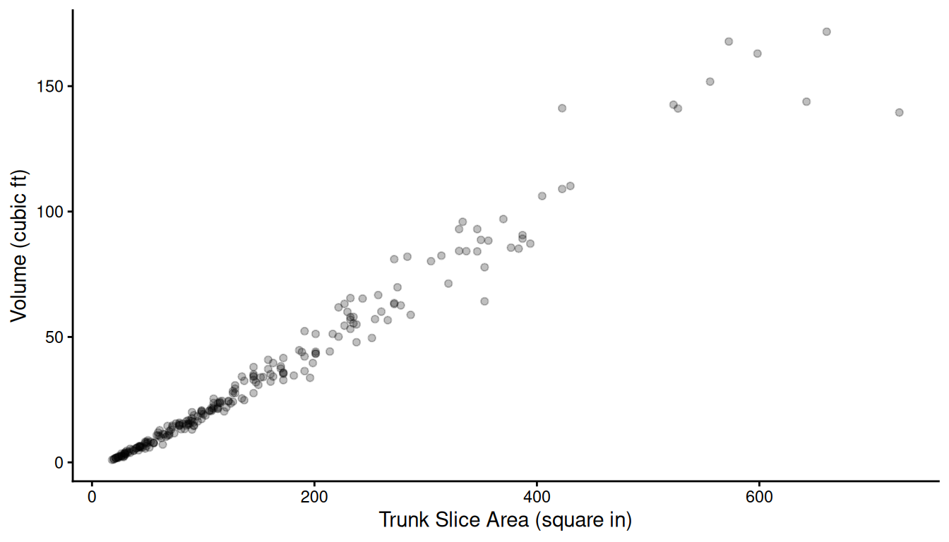 Note: There is a connection between a ratio estimator and the estimator of a ratio (\(r = \bar{y}/\bar{x}\)) since we can write the ratio estimators as \(\hat\mu_y = r\mu_x\) and \(\hat\tau_y = r\tau_x\).