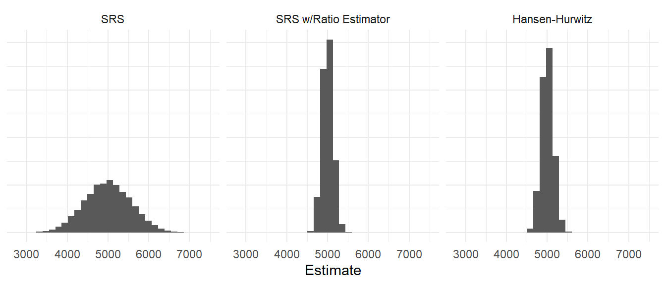 | SRS w/Ratio Estimator | 342844.8 | 1171.0591 |
