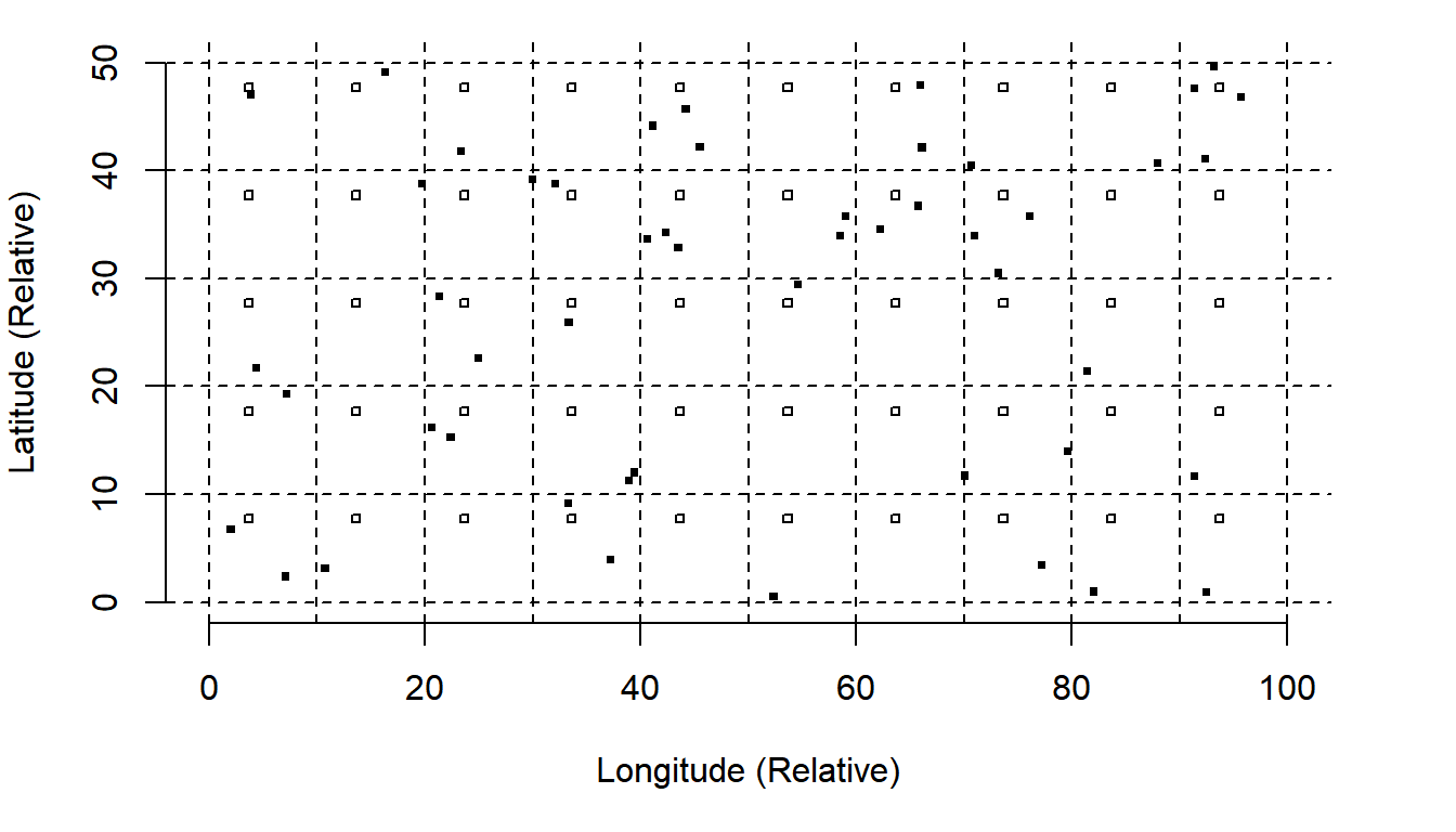 It might be convenient to cluster adjacent elements.| Sampling Units | \(\mathcal{E}_{1}\) | \(\mathcal{E}_{2}\) | \(\mathcal{E}_{3}\) | \(\mathcal{E}_{4}\) | \(\mathcal{E}_{5}\) | \(\mathcal{E}_{6}\) | \(\mathcal{E}_{7}\) | \(\mathcal{E}_{8}\) | \(\mathcal{E}_{9}\) | \(\mathcal{E}_{10}\) | \(\mathcal{E}_{11}\) | \(\mathcal{E}_{12}\) |