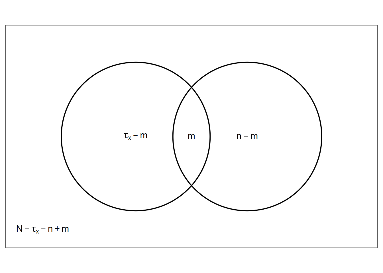 | Total | \(n\) | \(N-n\) | \(N\) |