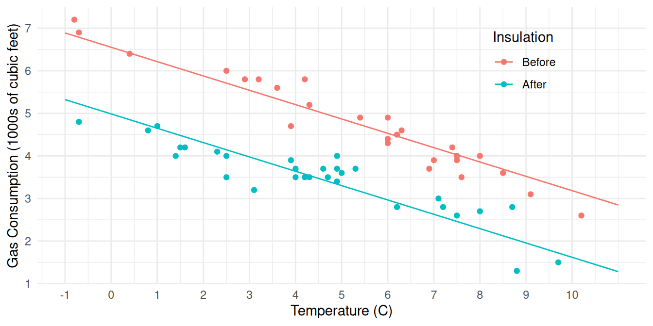 # so we could also write the model formula as Gas ~ Insul*Temp.