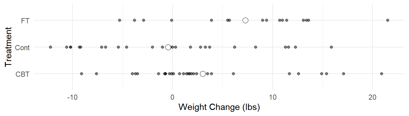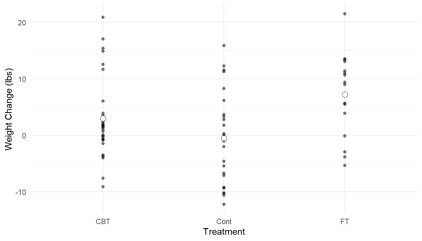 p <- ggplot(anorexia, aes(x = Treat, y = change)) + theme_minimal() +