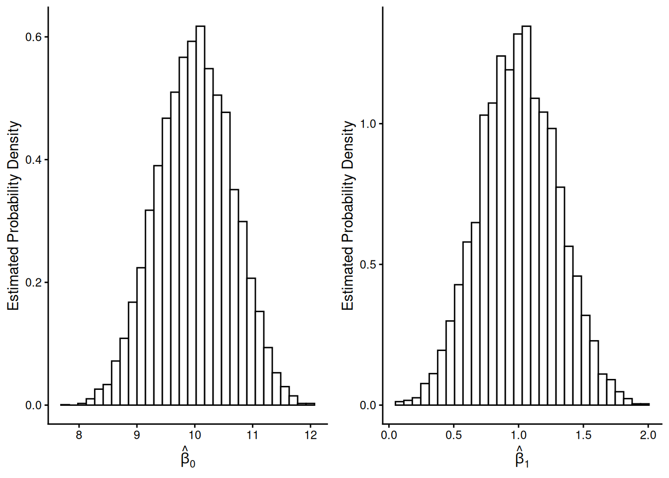 Description: It is assumed that the distribution of each \(\epsilon_i\) is normal, which implies that the distribution of each \(Y_i\) is also normal (conditional on \(x_{i1}, x_{i2}, \dots, x_{ik}\)).