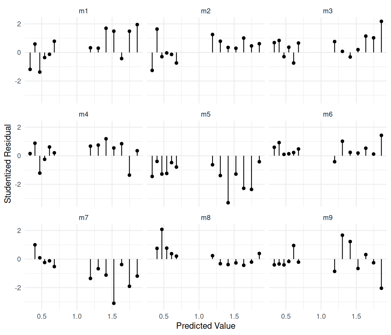 labs(x = "Predicted Value", y = "Studentized Residual")