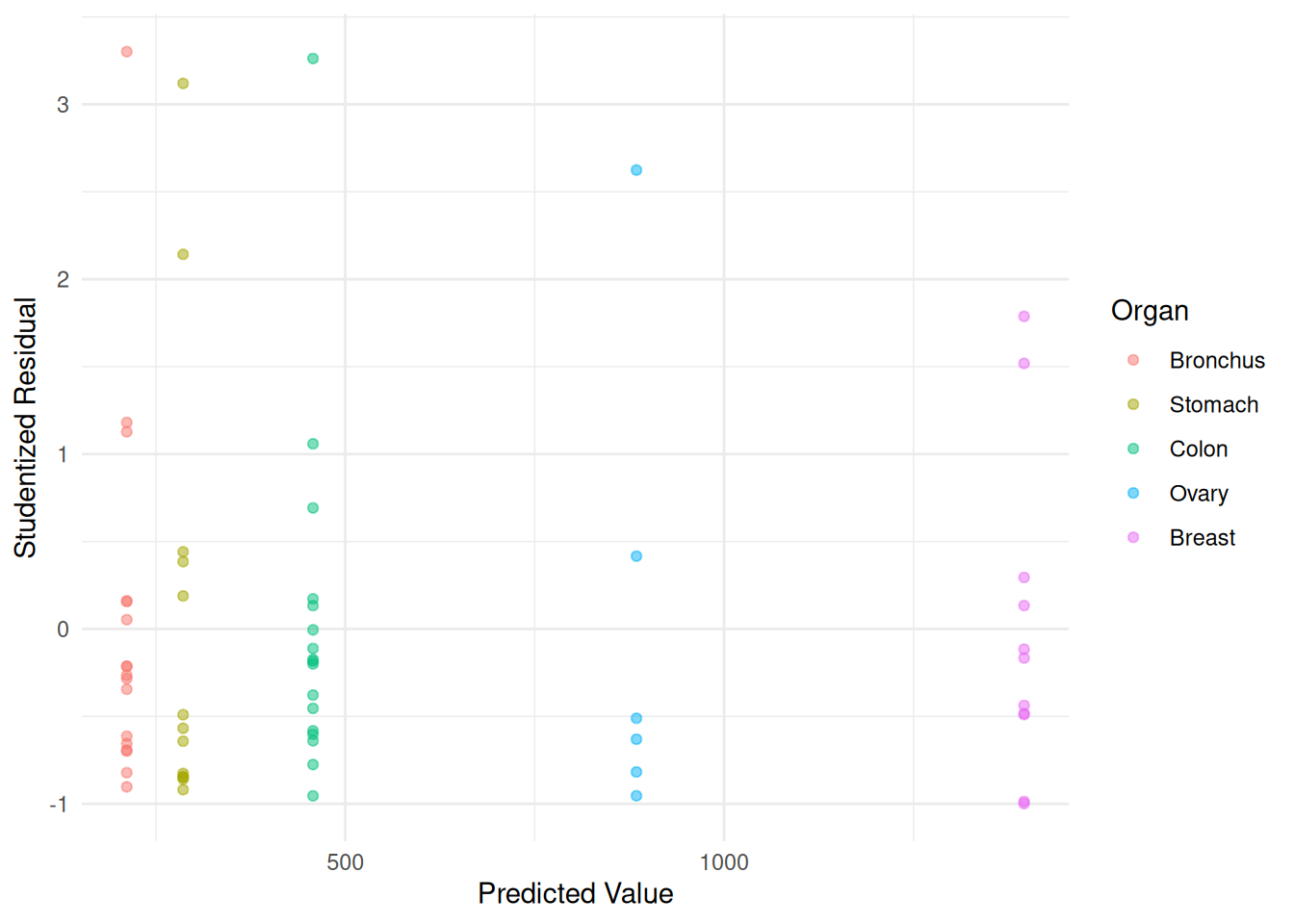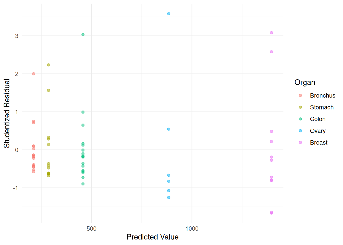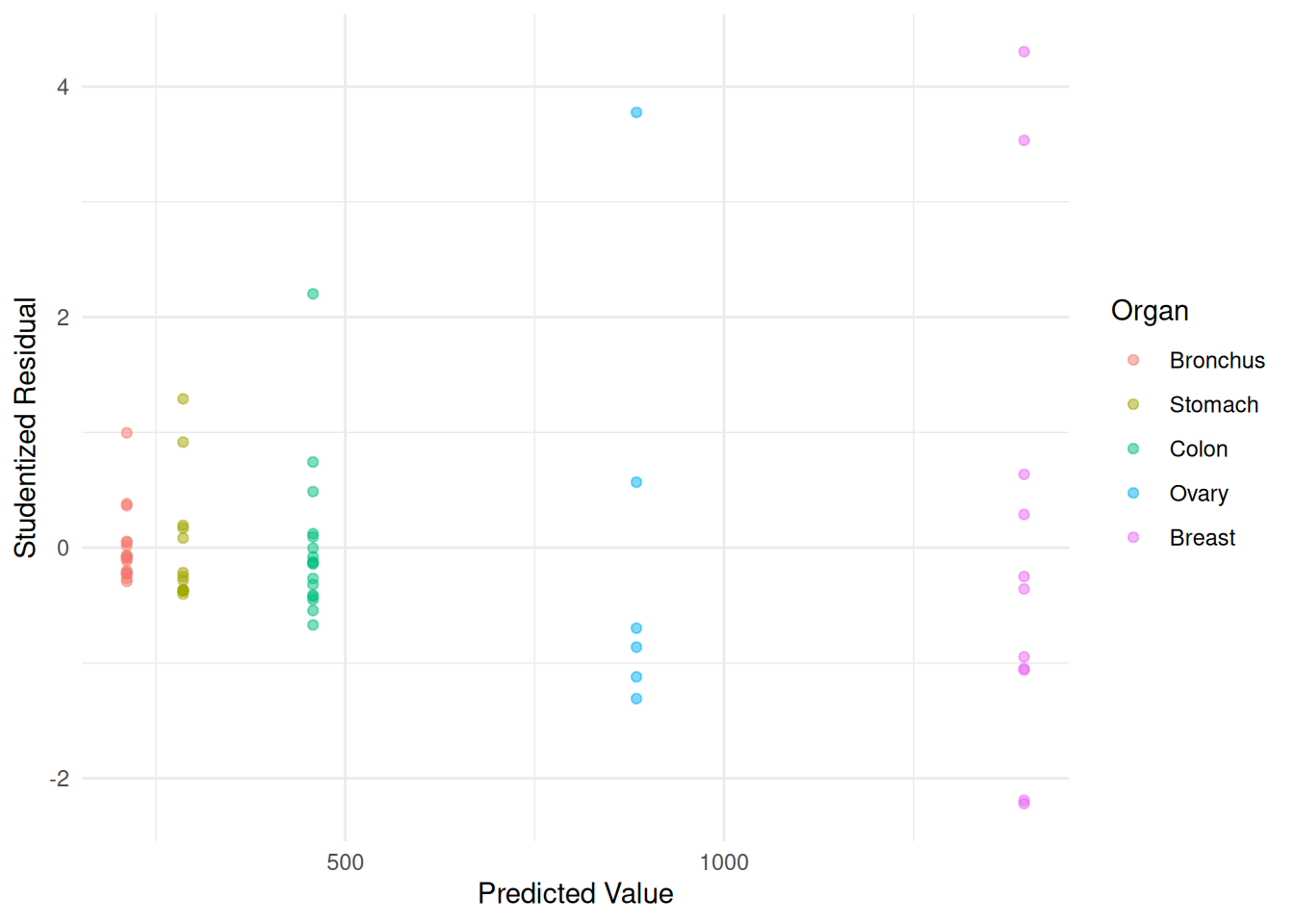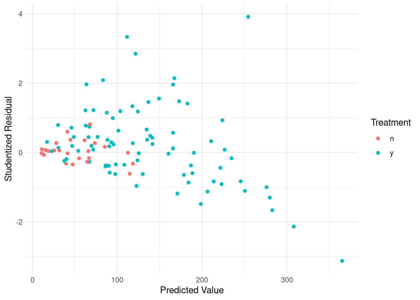 labs(x = "Predicted Value", y = "Studentized Residual")
