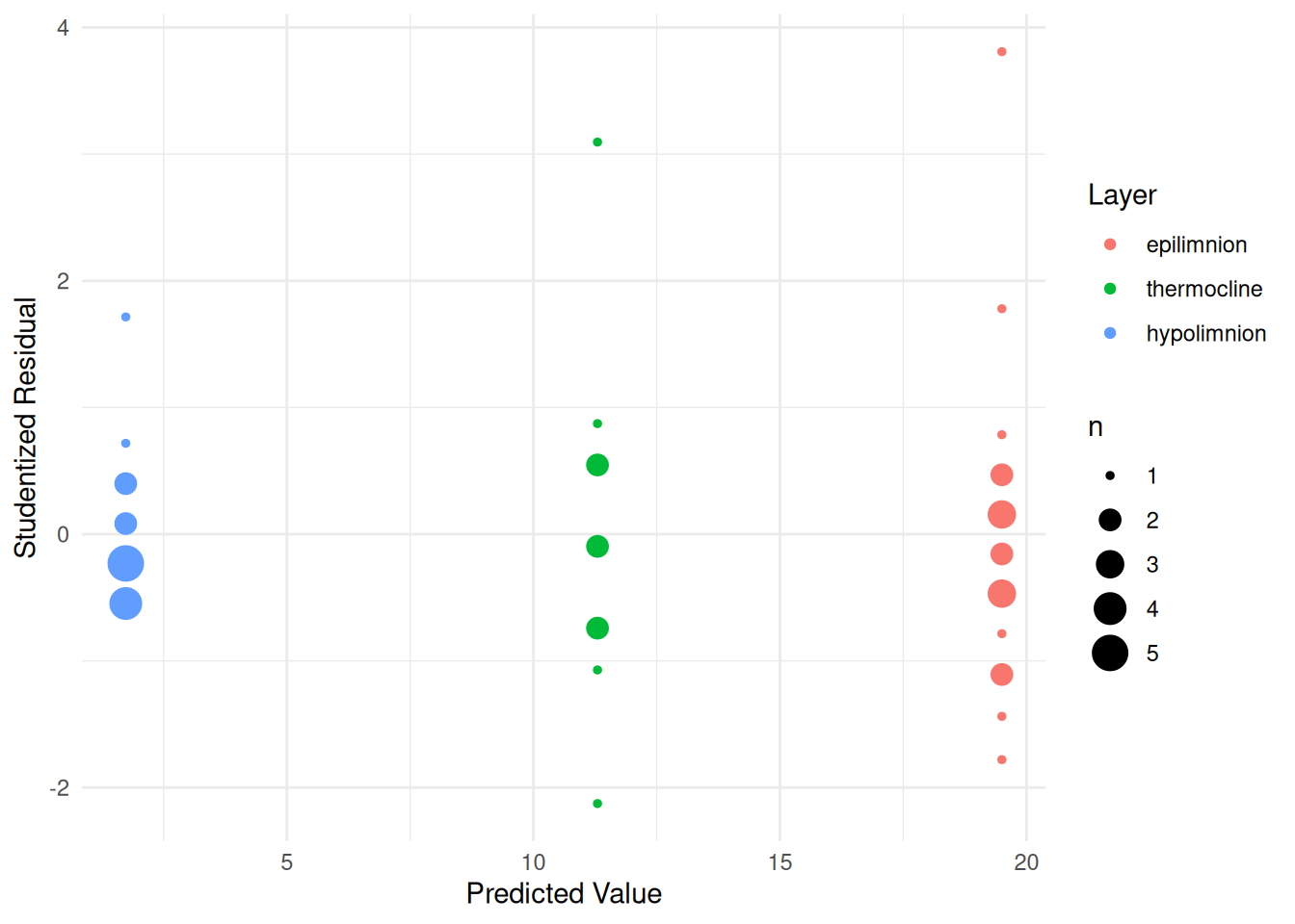 labs(x = "Predicted Value", y = "Studentized Residual", color = "Layer")