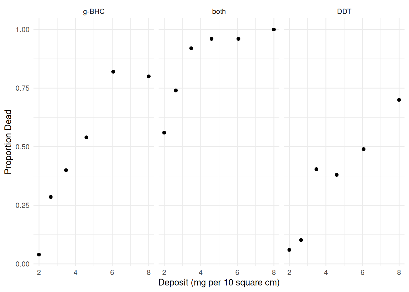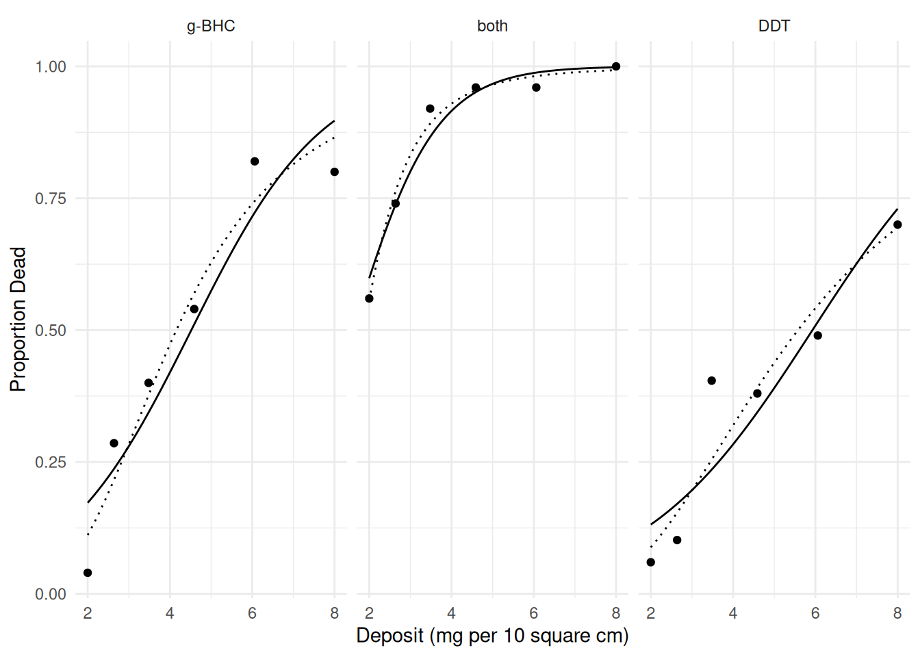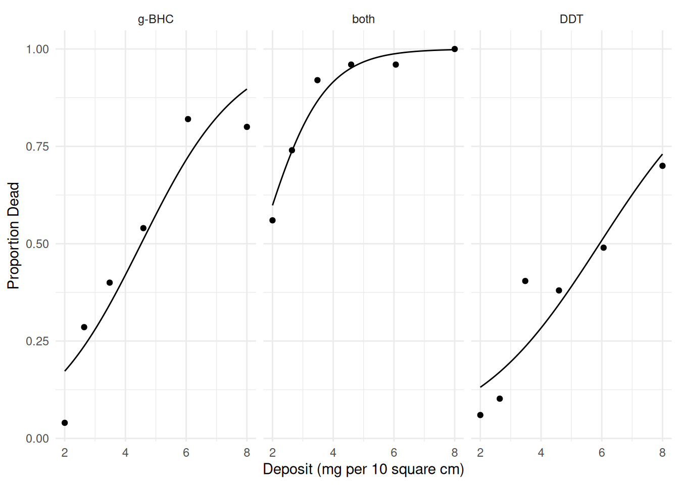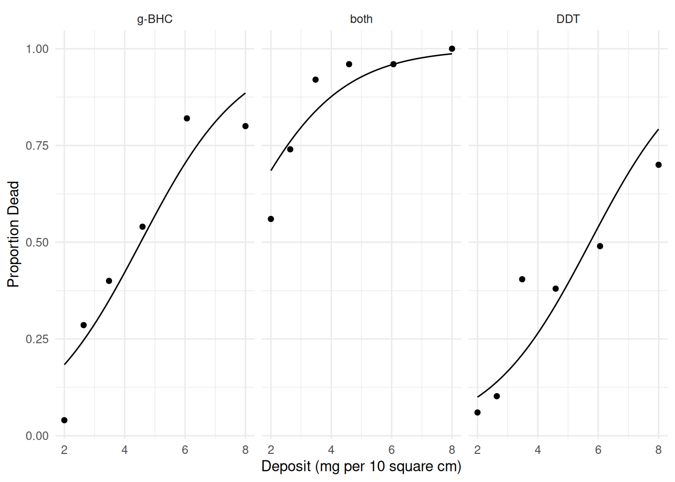 labs(x = "Deposit (mg per 10 square cm)", y = "Proportion Dead")