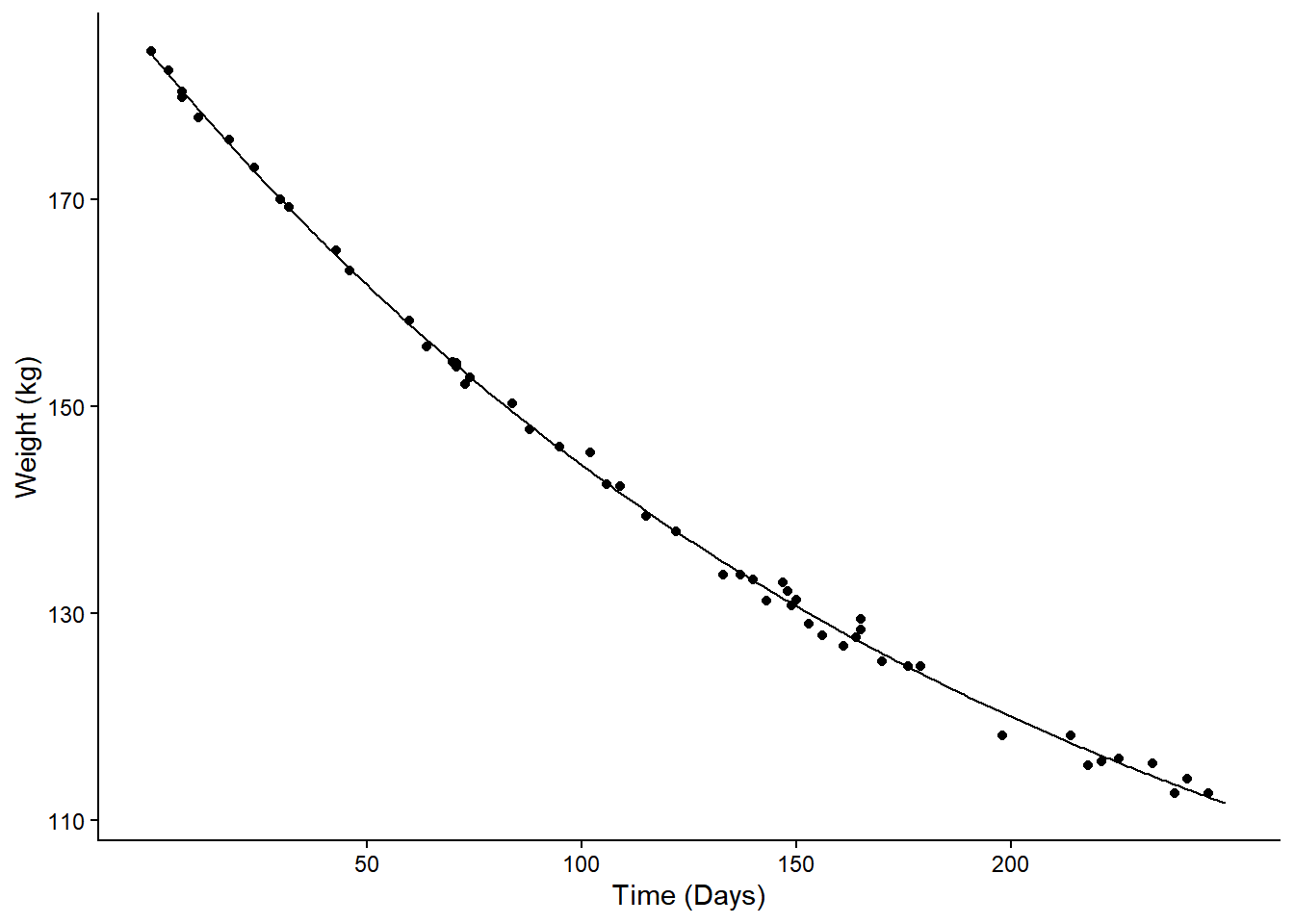 labs(y = "Weight (kg)", x = "Time (Days)") +