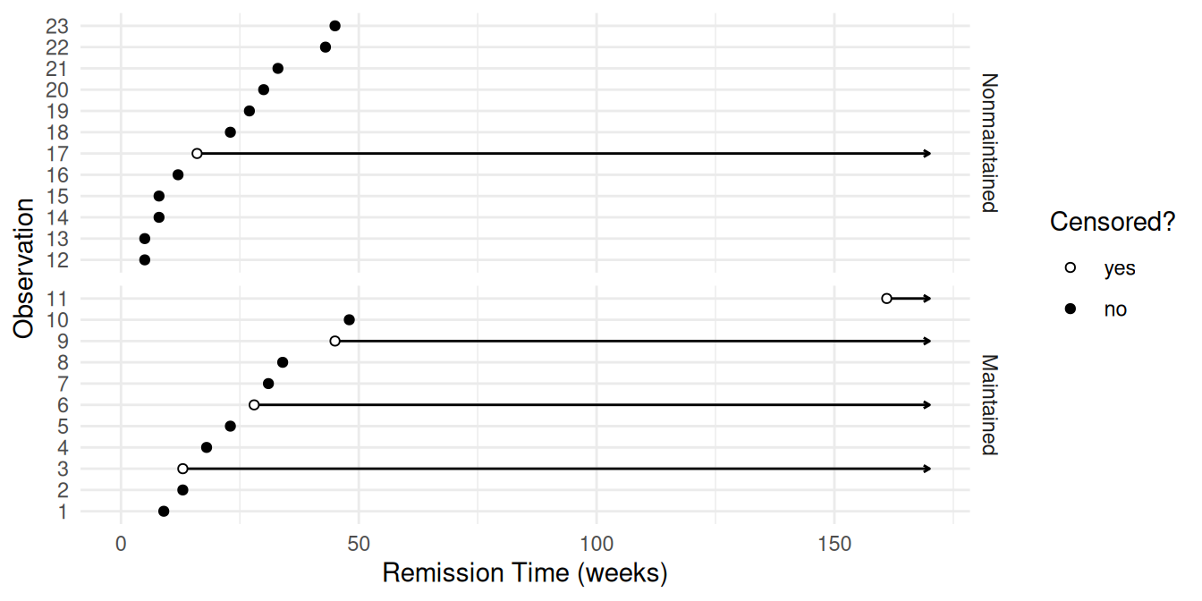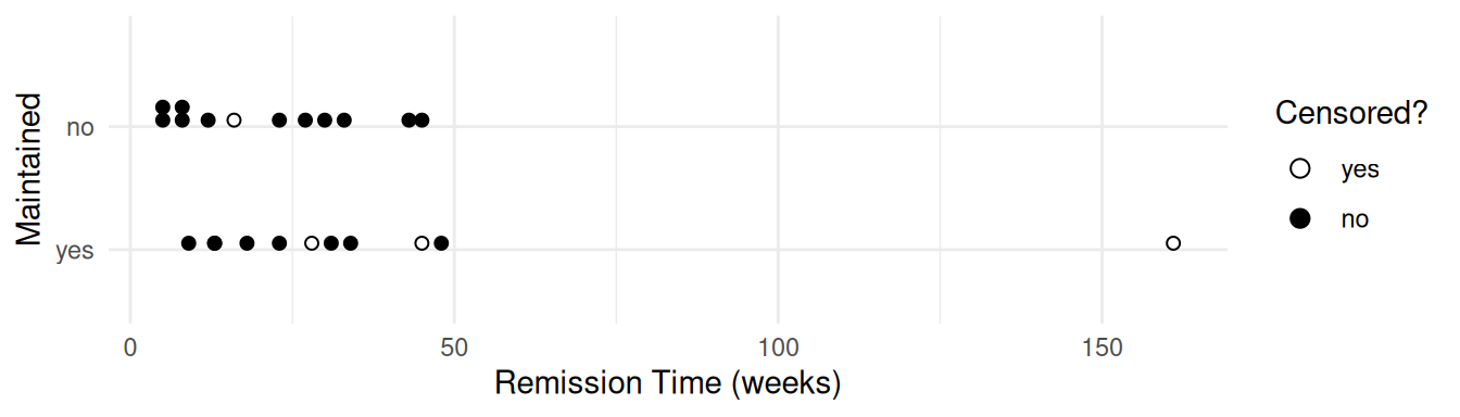 leukemia$censored <- factor(leukemia$status, levels = c(0,1),